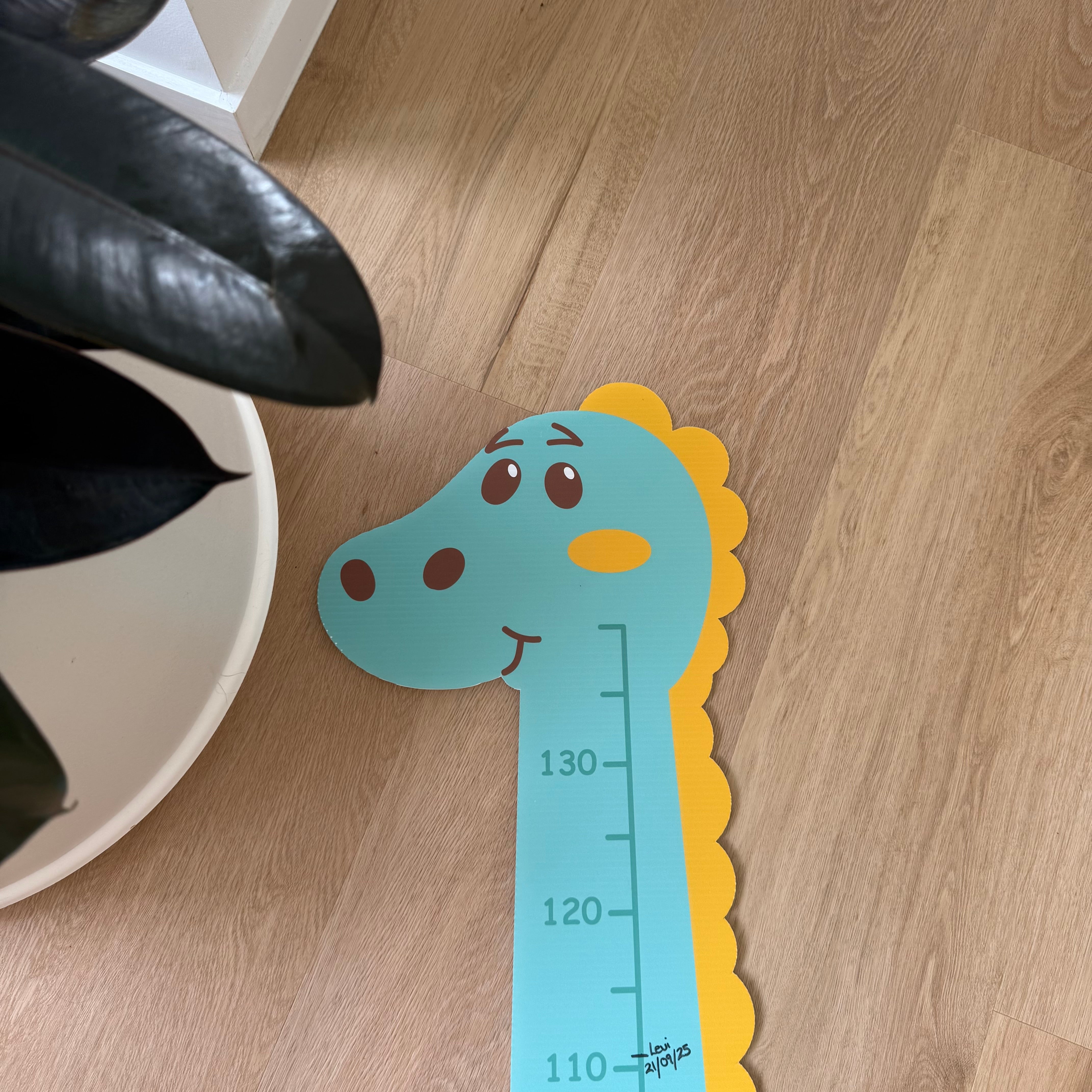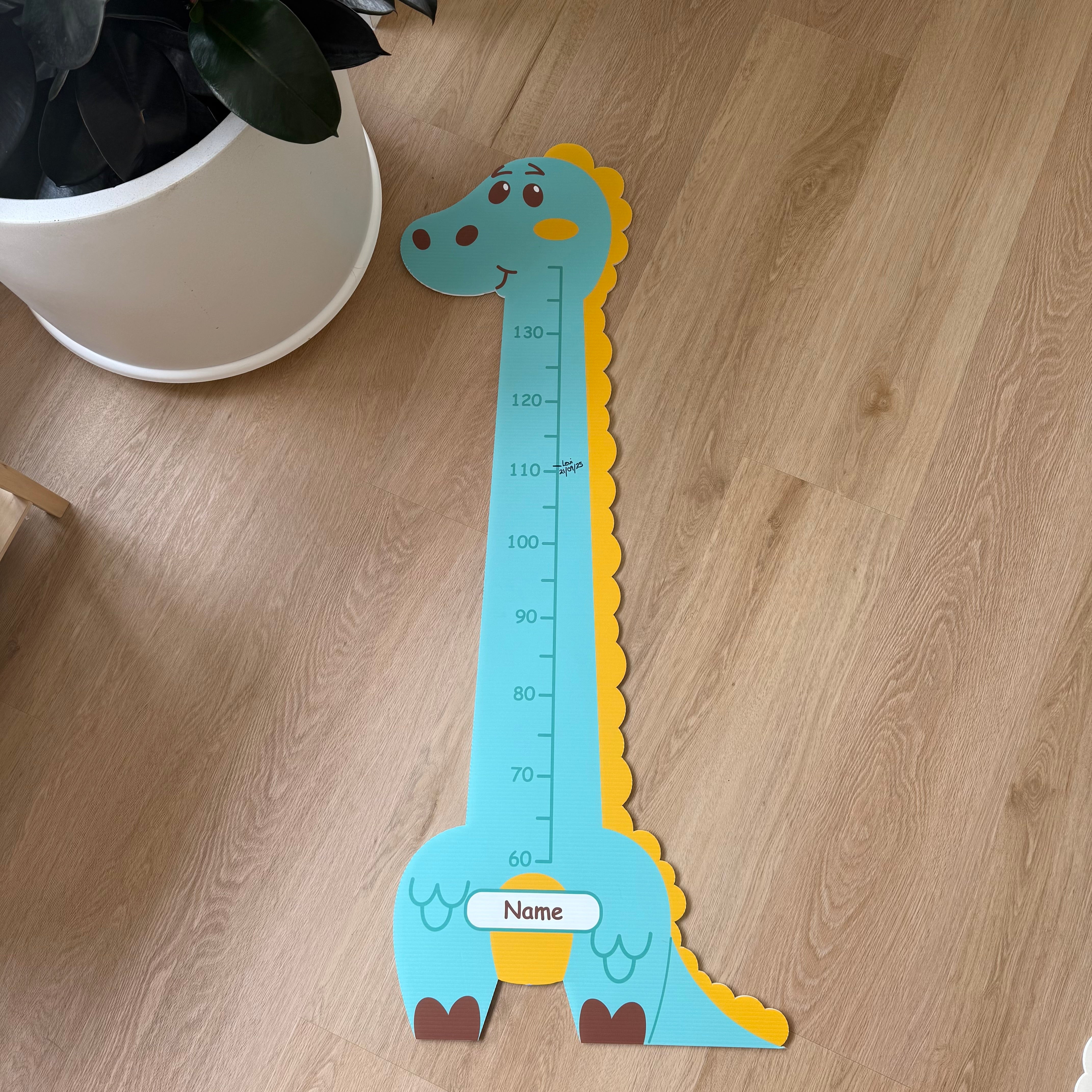 Make milestones fun and easy to track with our personalised corflute height charts. Pick your child’s favourite animal with their name at the bottom and mount to their wall or door. Because the scale starts at 60 cm, you get longer usable length and a cleaner look off the floor. We include a setup ruler strip to measure from the floor to the bottom of the chart, stick it on, and you’re perfectly aligned—no guessing.
