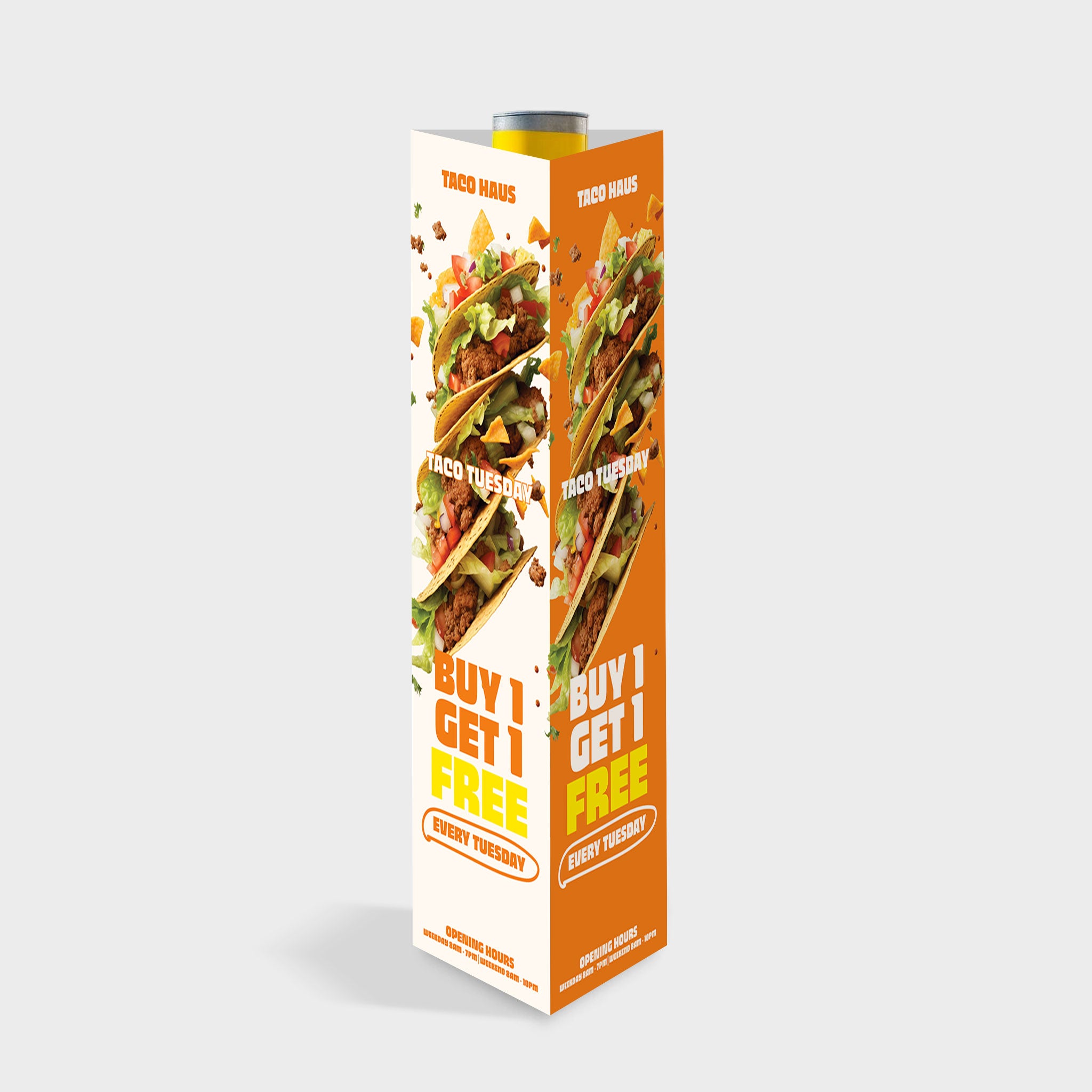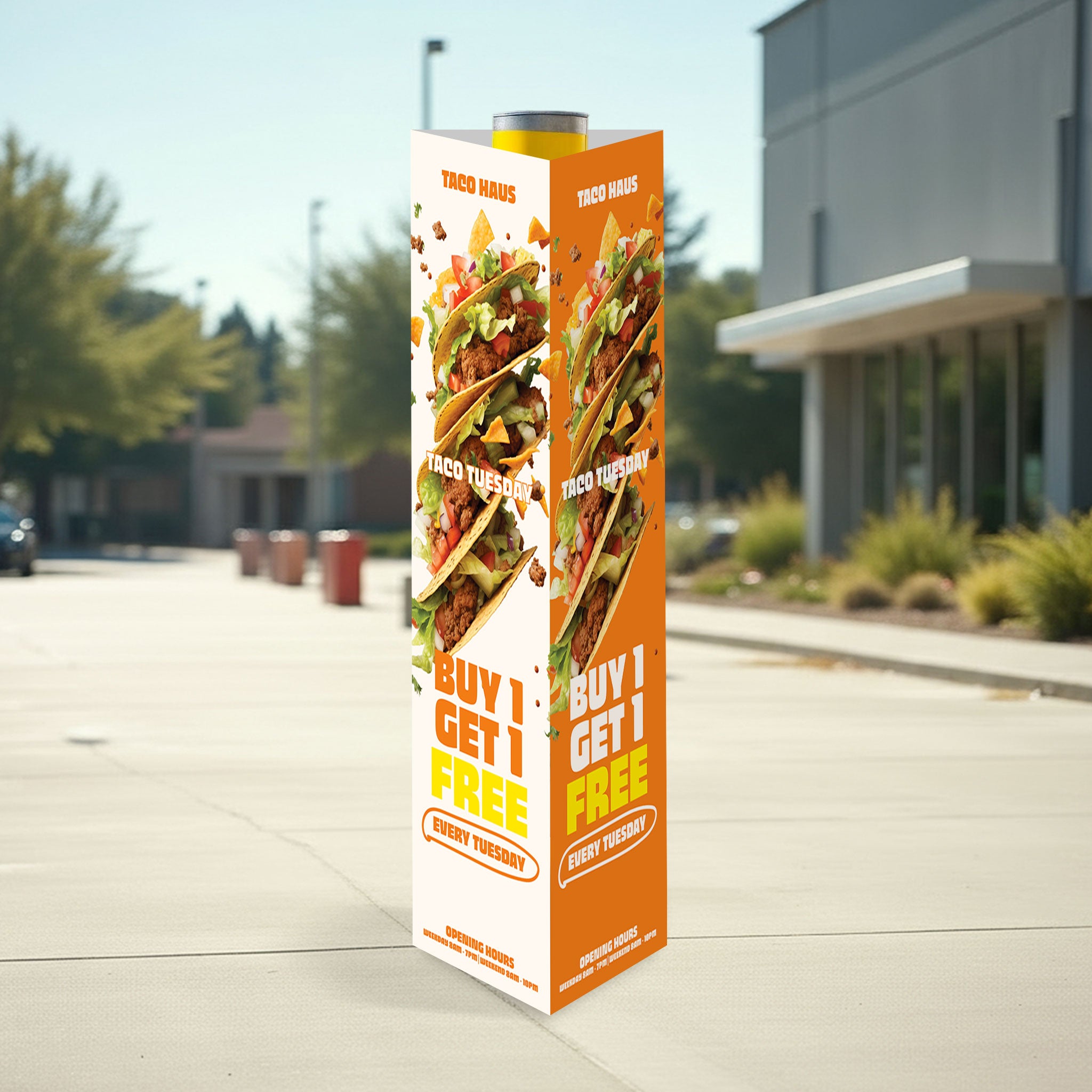 Turn ordinary bollards into bold brand statements with our custom printed Bollard Cover Signs. Designed to slip over existing posts, these covers catch the eye, increase visibility, and give your retail or outdoor space an instant upgrade.
