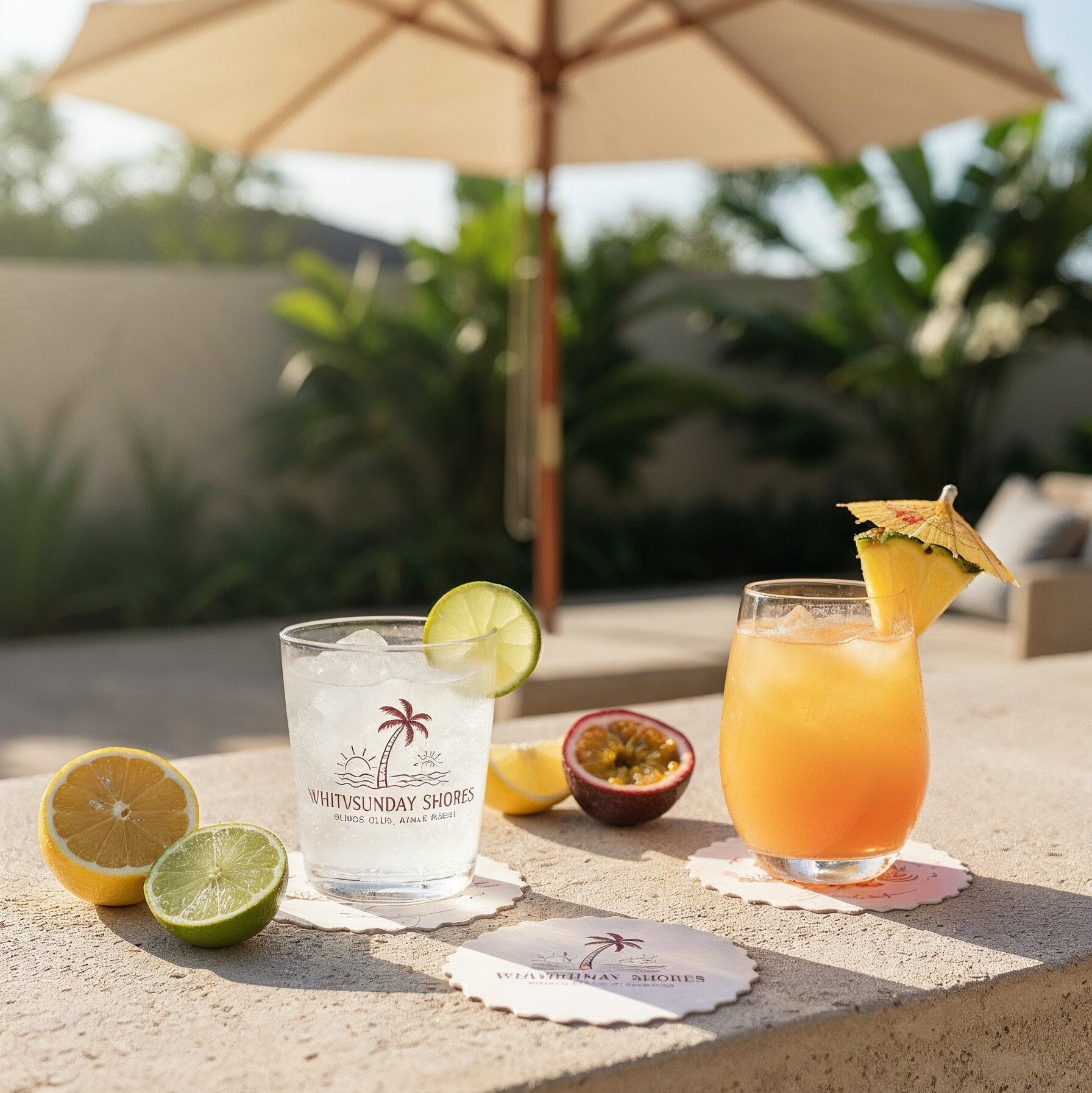 Branded Wavy Edge Coasters – 95mm | Double-Sided | 300gsm